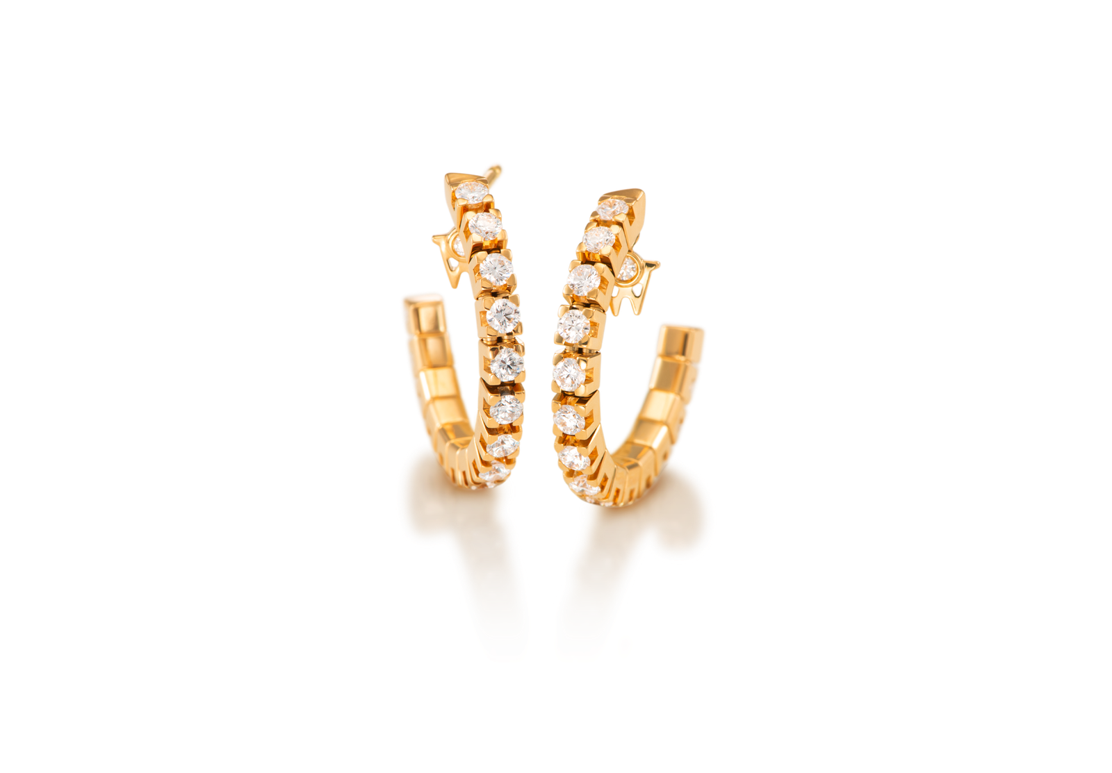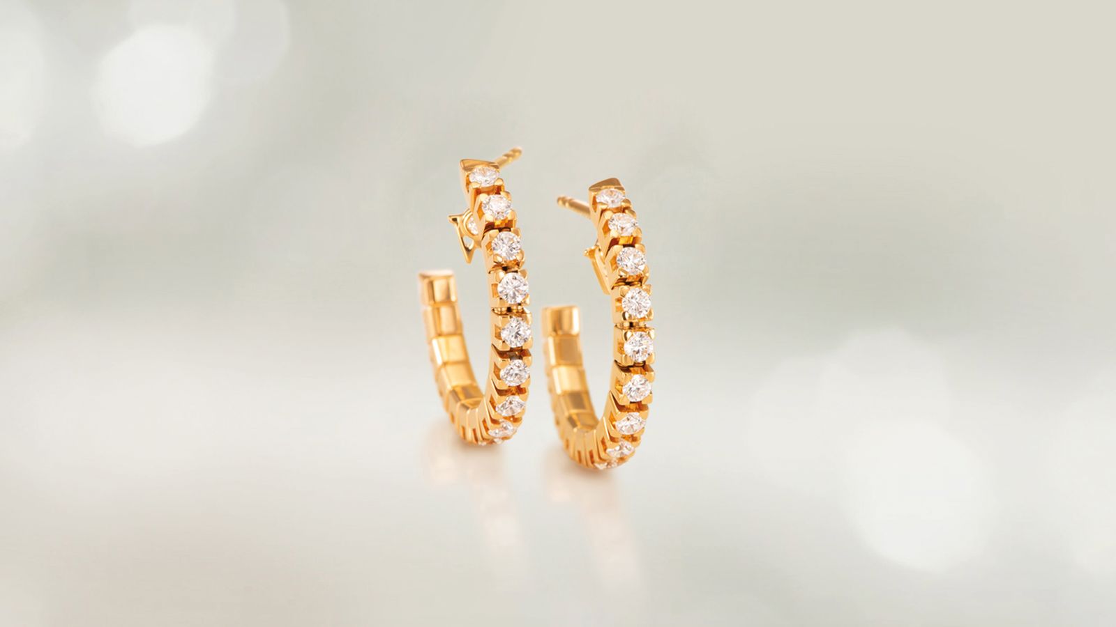 In addition to their lightweight design weighing just 4 grams, the exact alignment of the hoops’ centre of gravity is also crucial. To ensure that they sit perfectly, the "magical" cubes at the ends are bevelled at an angle of 35 degrees and each earring post is attached at a right angle. As a result, the sparkling diamonds look even more striking.